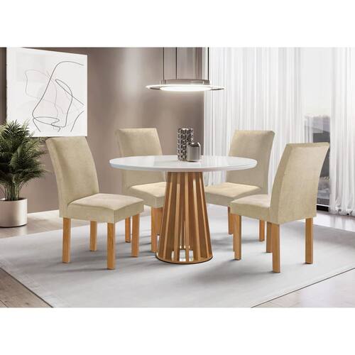 Particularidades da Sala de Jantar Características da Mesa: - Estrutra em MDF/MDP - Tampo com vidro sobreposto 4mm - Acabamento em pintura UV - Mesa redonda