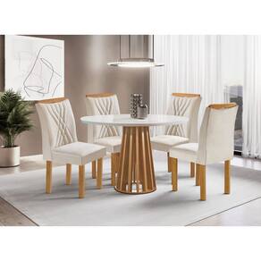 Sala de Jantar 4 Cadeiras c Vidro 1,0m - Dublin - Sky Móveis - Off White | Cinamomo
