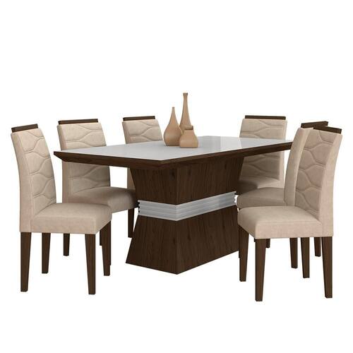 O Conjunto Sala de Jantar Nazca com 6 Cadeiras Vitória exala projetada em seu design, combinação perfeita de materiais luxuosos e detalhes sofisticados, criando um ambiente encantador e convidativo.
