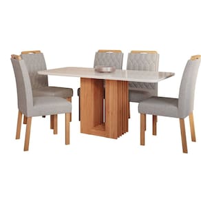 Sala de Jantar Ariela 180cm com 6 Cadeiras Paola CINAMOMO/OFF/MAD/LINHO GRAFITE - Marrom
