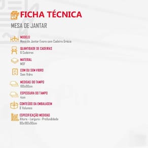 Sala De Jantar Mesa Evora Canto Copo Com 6 Cad Grecia Rufato Vel.creme /off White/imbuia Para trazer mais beleza, conforto e sofisticacao a sua sala de jantar ou cozinha, a escolha perfeita e o Conjunto Evora com 6 cadeiras Grecia A mesa e retangular, muito espacosa, comporta de maneira confortavel seis pessoas. Possui tampo com acabamento Uv e vidro serigrafado/temperado de 4mm, que trazem mais durabilidade para seu produto. Ja as cadeiras do conjunto possuem espuma de alta densidade proporcionando ainda mais conforto para seus amigos e familiares. Que tal renovar sua casa com todo conforto e beleza do Conjunto Evora? Garanta ja o seu! Caracteristicas: Material: 100 MDF Tampo com vidro temperado 4mm Canto Copo