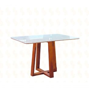 Sala de jantar 4 lugares, Mesa Pedro 1,20x 0,80 metros com vidro Off White, quina copo, 4 Cadeiras madeira maciça Pedro - Art Salas