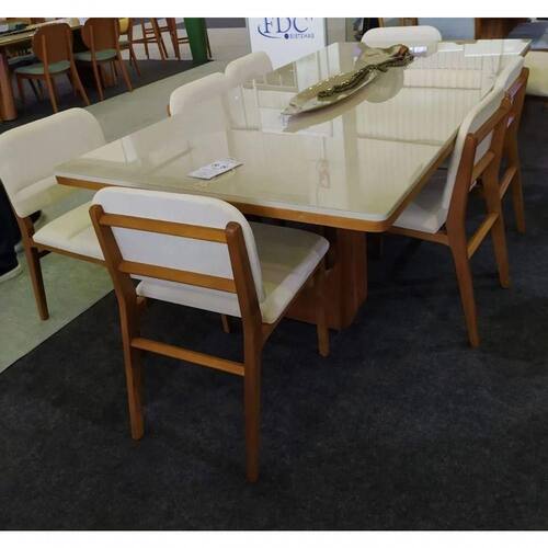 Sala de Jantar com Vidro 8 Cadeiras 2,20x1,10m - Estellar - Requinte Salas