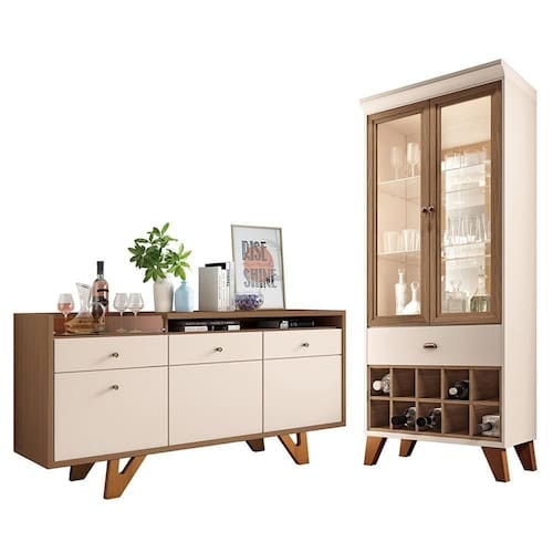 Sala de Jantar com Cristaleira Ópera e Buffet Aparador Sollare - HB Móveis