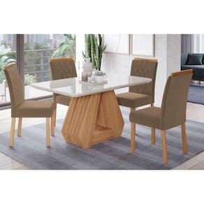 Sala De Jantar Completa ágata Tampo Madeirado C/ Vidro 130x80cm E 4 Cadeiras Juliana Madeirado/suede Joli Capuccino - Cimol