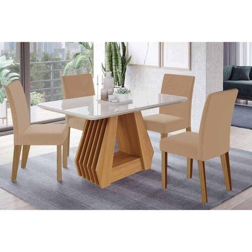 Sala de Jantar Completa Ágata Tampo Madeirado c/ Vidro 130x80cm e 4 Cadeiras Maia Cinamomo/Off White - Nature/Suede Gengibre Bege - Cimol Abaixo segue os produtos do KIT: Sala de Jantar Completa Ágata Tampo Madeirado c/ Vidro 130x80cm e 4 Cadeiras Maia Cinamomo/Off White - Nature/Suede Gengibre Bege - Cimol
