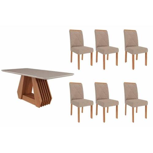 Sala de Jantar Completa Ágata Tampo Madeirado c/ Vidro 180x90cm e 6 Cadeiras Fernanda Cinamomo/Off White - Carvalho/Linho Bege - Cimol Abaixo segue os produtos do KIT: Sala de Jantar Completa Ágata Tampo Madeirado c/ Vidro 180x90cm e 6 Cadeiras Fernanda Cinamomo/Off White - Carvalho/Linho Bege - Cimol