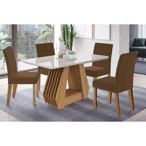 Sala de Jantar Completa Ágata Tampo Madeirado c/ Vidro 180x90cm e 6 Cadeiras Maia Nature/Off White - Cinamomo/Suede Mascavo Chocolate - Cimol Abaixo segue os produtos do KIT: Sala de Jantar Completa Ágata Tampo Madeirado c/ Vidro 180x90cm e 6 Cadeiras Maia Nature/Off White - Cinamomo/Suede Mascavo Chocolate - Cimol