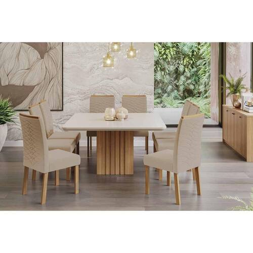Sala de Jantar Completa Ana Tampo Madeirado c/ Vidro 130x130cm e 8 Cadeiras Clarice Cinamomo/Off White - Carvalho/Linho Bege - Cimol Abaixo segue os produtos do KIT: Sala de Jantar Completa Ana Tampo Madeirado c/ Vidro 130x130cm e 8 Cadeiras Clarice Cinamomo/Off White - Carvalho/Linho Bege - Cimol
