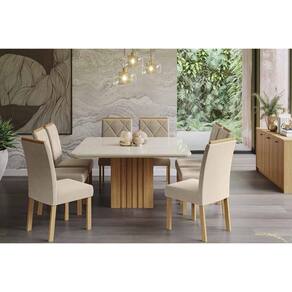 Sala de Jantar Completa Ana Tampo Madeirado c/ Vidro 130x130cm e 8 Cadeiras Fernanda Cinamomo/Off White - Carvalho/Linho Bege - Cimol Abaixo segue os produtos do KIT: Sala de Jantar Completa Ana Tampo Madeirado c/ Vidro 130x130cm e 8 Cadeiras Fernanda Cinamomo/Off White - Carvalho/Linho Bege - Cimol