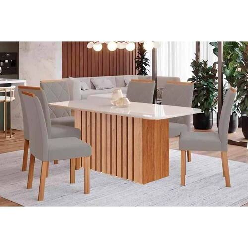 Sala de Jantar Completa Ana Tampo Madeirado c/ Vidro 180x90cm e 6 Cadeiras Fernanda Cinamomo/Off White - Carvalho/Linho Grafite - Cimol Abaixo segue os produtos do KIT: Sala de Jantar Completa Ana Tampo Madeirado c/ Vidro 180x90cm e 6 Cadeiras Fernanda Cinamomo/Off White - Carvalho/Linho Grafite - Cimol