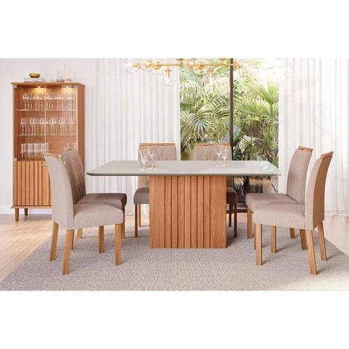 Sala de Jantar Completa Ana Tampo Madeirado c/ Vidro 180x90cm e 6 Cadeiras Juliana Nature/Off White - Carvalho/Linho Bege - Cimol Abaixo segue os produtos do KIT: Sala de Jantar Completa Ana Tampo Madeirado c/ Vidro 180x90cm e 6 Cadeiras Juliana Nature/Off White - Carvalho/Linho Bege - Cimol