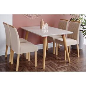 Sala de Jantar Completa Adele c/ Tampo Madeirado 130cm + 4 Cadeiras Juliana Madeira/Suede Nude - Cimol