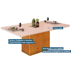 Mesa de Sala Jantar Canes c/ Tampo Madeirado c/ Vidro Curvo 200x100cm Freijó/Off White - DJ Móveis