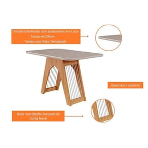 Mesa de Sala Jantar Carol + Tampo Madeirado Vidro 180x90cm Nature/Off White - Cimol