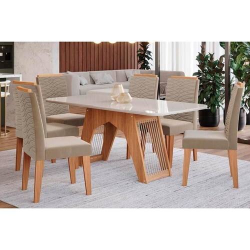 Sala De Jantar Completa Carol C/ Tampo Madeirado C/ Vidro 180x90cm E 6 Cadeiras Clarice Savana-madeirado/suede Joli Capuccino - Cimol