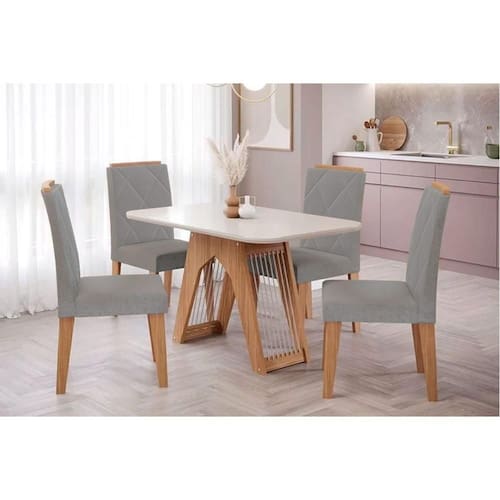 Sala de Jantar Completa Carol Tampo Madeirado c/ Vidro 130x80cm e 4 Cadeiras Fernanda Madeirado/Linho Grafite - Cimol Abaixo segue os produtos do KIT: Sala de Jantar Completa Carol Tampo Madeirado c/ Vidro 130x80cm e 4 Cadeiras Fernanda Madeirado/Linho Grafite - Cimol