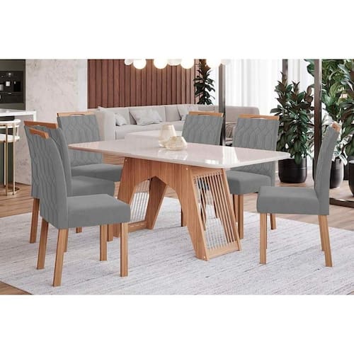 Sala de Jantar Completa Carol Tampo Madeirado c/ Vidro 180x90cm e 6 Cadeiras Paola Nature-Madeirado/Grafite - Cimol Abaixo segue os produtos do KIT: Sala de Jantar Completa Carol Tampo Madeirado c/ Vidro 180x90cm e 6 Cadeiras Paola Nature-Madeirado/Grafite - Cimol