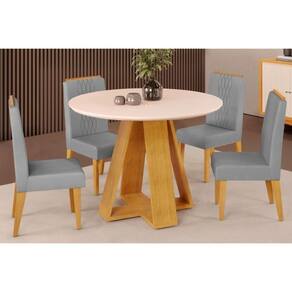 Sala De Jantar Completa Celeste Tampo Madeirado C/ Vidro Redondo 103x103cm E 4 Cadeiras Lia Cedro/off White - Suede Lunar - Dj Móveis