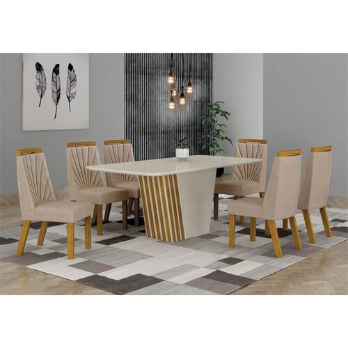 Para uma sala de jantar receptiva e agradável, é preciso apostar nos móveis certos, sejam eles para as refeições do dia a dia ou para as confraternizações ao lado de familiares e amigos. Este conjunto esbanja modernidade na estrutura e design minimalista, tampo com bordas curvas, cadeiras com revestimento em tecido. Esta linda Sala de Jantar tem características ideais para dar um upgrade na sua decoração, de quebra, reunir todo mundo para momentos mais intimistas e divertidos. Confira e aproveite!