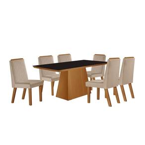 Sala de Jantar Completa com 6 Cadeiras 1,80x0,90m - Prada - LJ Móveis O Conjunto de jantar em MDF 6 lugares Prada é moderno e lindo, com ele qualquer ambiente fica chique e prazeroso. As Cadeiras possuem encostos no formato anatômico e detalhe em MDF acima do encosto estofado. A Mesa conta com tampo de acabamento UV e vidro serigrafado / temperado de 4mm, que traz mais durabilidade para seu produto. Faz parte do anúncio: 1 Mesa Prada 1,80x0,90m 6 Cadeiras Rivieira Obs. Objetos de decoração não inclusos Particularidades da Mesa: Características: - Vidro Serigrafado Temperado 4mm; - Estrutura em MDF/MDP; - Mesa retangular; - Desing moderno; Particularidades da Cadeira: Características: - Desing moderno; - Estrutura em MDF; - Base assento em MDP; - Suporta ate 120 kg distribuídos; - Espuma D20 para o assento e D18 para o encosto; Dimensões da Mesa: Altura: 80 centímetros Largura: 1,80 metros Profundidade: 90 centímetros Dimensões da Cadeira: Altura: 99 centímetros Largura: 43 centímetros Profundidade : 54,5 centímetros Informações Importantes:. - Produtos podem apresentar diferenças de tonalidades entre a foto na tela e o produto real, devido a calibração de cor de tela. - Limpar com flanela ou pano macio. Não utilizar álcool. Não utilizar produtos abrasivos ou corrosivos. - Nós prezamos pela qualidade da entrega em primeiro lugar, trabalhamos com transportadoras altamente selecionadas e os melhores materiais de embalagem. - A montagem é de total responsabilidade do comprador. Antes de comprar, verifique o espaço disponível para a montagem. - Certifique-se de que o produto caiba em elevadores e vãos de escadas, não fazemos içamentos. Quaisquer despesas deste tipo ficam a cargo do cliente. - Garantia de 3 meses contra defeitos de fabricação.