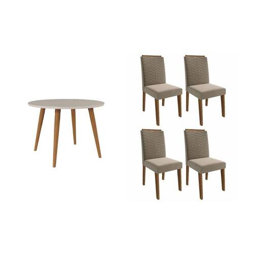 Sala De Jantar Completa Dani C/ Tampo Madeirado C/ Vidro 110cm E 4 Cadeiras Clarice Nature/suede Joli Chocolate - Cimol