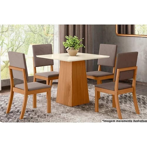 Sala de Jantar Completa Dora Tampo Madeirado 90cm e 4 Cadeiras Milla Nature/Veludo Light Marrom Amendoa - Henn Abaixo segue os produtos do KIT: Sala de Jantar Completa Dora Tampo Madeirado 90cm e 4 Cadeiras Milla Nature/Veludo Light Marrom Amendoa - Henn
