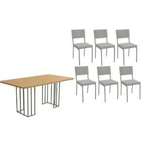 Sala de Jantar Completa Duina c/ Tampo de Madeira 160cm e 6 Cadeiras Zaria Niquel/Freijo - Boucle Cinza - Kappesberg Abaixo segue os produtos do KIT: Sala de Jantar Completa Duina c/ Tampo de Madeira 160cm e 6 Cadeiras Zaria Niquel/Freijo - Boucle Cinza - Kappesberg