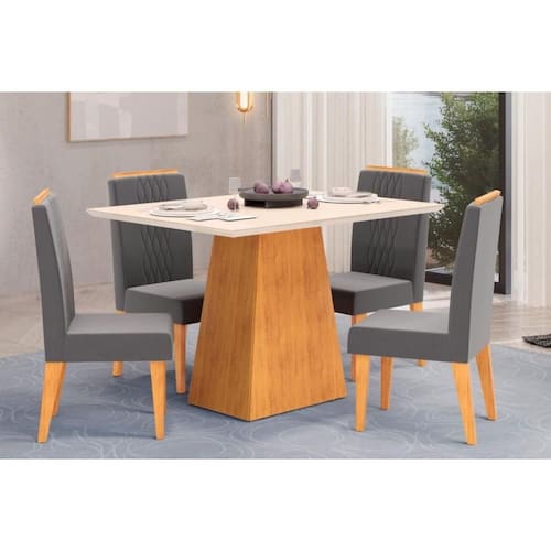 Sala de Jantar Completa Dulce Tampo Madeirado c/ Vidro Reto 120x90cm e 4 Cadeiras Lia Cedro/Off White - Suede Lunar - DJ Móveis Abaixo segue os produtos do KIT: Sala de Jantar Completa Dulce Tampo Madeirado c/ Vidro Reto 120x90cm e 4 Cadeiras Lia Cedro/Off White - Suede Lunar - DJ Móveis