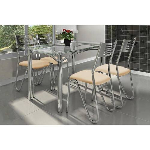 Sala De Jantar Completa Elba C/ Tampo Vidro 140cm + 4 Cadeiras Nápoles Cromado/courano Nude - Kappesberg