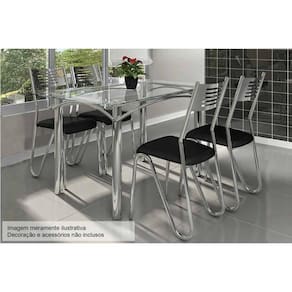 Sala De Jantar Completa Elba C/ Tampo Vidro 140cm + 4 Cadeiras Nápoles Cromado/courano Preto - Kappesberg
