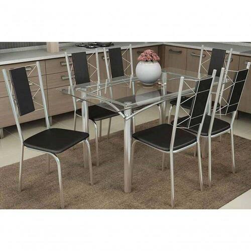 Sala De Jantar Completa Elba C/ Tampo Vidro 140cm + 6 Cadeiras Lisboa Cromado/courano Marrom - Kappesberg