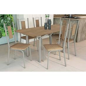 Sala de Jantar Completa Elba c/ Tampo de Madeira 160cm e 6 Cadeiras Florença Niquel/Nogueira - Courano Capuccino - Kappesberg
