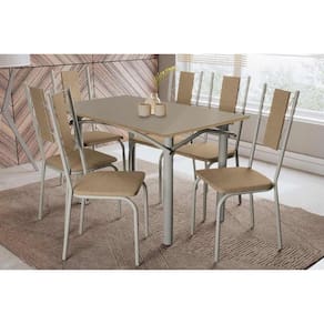 Sala de Jantar Completa Elba Tampo Madeirado c/ Vidro 120cm e 6 Cadeiras Lisboa Niquel/Freijo Bronze - Courano Capuccino - Kappesberg Abaixo segue os produtos do KIT: Sala de Jantar Completa Elba Tampo Madeirado c/ Vidro 120cm e 6 Cadeiras Lisboa Niquel/Freijo Bronze - Courano Capuccino - Kappesberg