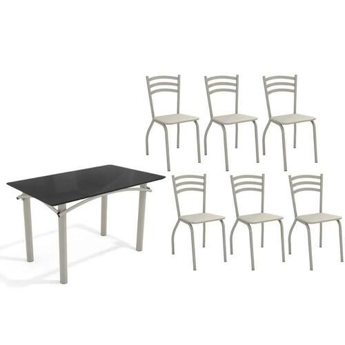 Sala de Jantar Completa Elba Tampo Madeirado c/ Vidro 120cm e 6 Cadeiras Portugal Niquel/Preto - Courano Bege - Kappesberg Abaixo segue os produtos do KIT: Sala de Jantar Completa Elba Tampo Madeirado c/ Vidro 120cm e 6 Cadeiras Portugal Niquel/Preto - Courano Bege - Kappesberg