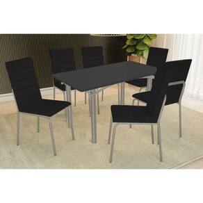 Sala de Jantar Completa Elba Tampo Madeirado c/ Vidro 160cm e 6 Cadeiras Amsterdã Niquel/Preto - Corano Preto - Kappesberg Abaixo segue os produtos do KIT: Sala de Jantar Completa Elba Tampo Madeirado c/ Vidro 160cm e 6 Cadeiras Amsterdã Niquel/Preto - Corano Preto - Kappesberg