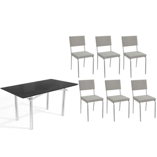 Sala De Jantar Completa Elba Tampo Madeirado C/ Vidro 160cm E 6 Cadeiras Zaria Cromada/preto - Boucle Cinza - Kappesberg
