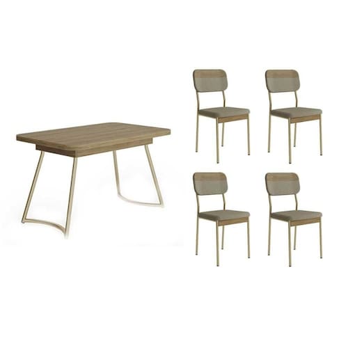 Sala de Jantar Completa Évora 1604 Aço c/ Tampo Madeirado 130x80cm e 4 Cadeiras Valle Dourado/Noce/Carvalho - Linho/Corano Bamboo - Carraro Abaixo segue os produtos do KIT: Sala de Jantar Completa Évora 1604 Aço c/ Tampo Madeirado 130x80cm e 4 Cadeiras Valle Dourado/Noce/Carvalho - Linho/Corano Bamboo - Carraro