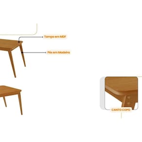 Abaixo segue os produtos do KIT: Sala de Jantar Completa Havana c/ Tampo Madeirado Canto Curvo 120x80cm e 4 Cadeiras Havana Naturale - Suede Capuccino - Rufato