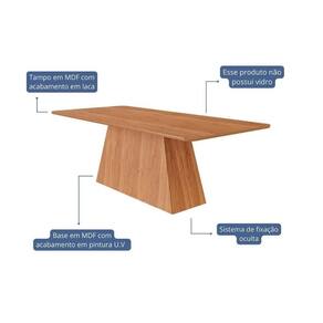Dimensões(Cm): Comprimento(Profundidade): 210cm x Largura: 100cm x Altura: 77,5cm Material de Estrutura - Estrutura em MDF Estilo do Móvel - Moderno Tipo de Pintura - UV Tipo de Acabamento da Pintura - Pintura Semi Brilho Vantagens Extras dos Moveis de Sala Estar e Jantar - Sim Tamanho do Tampo - Tampo 210 cm x 100 Espessura da Estrutura do Tampo - 25 Tipo de Formato Tampo da Mesa - Tampo Retangular Tipo das Quinas do Tampo da Mesa - Bordas Arredondadas Recomendações de Uso - Instruções de Cuidado Montagem do Produto - Desmontável - Necessita de Montagem Sistema de Montagem - Acompanha Manual de Instalação e Montagem Certificação de Qualidade - Qualidade Aprovada Nossa Avaliação - Qualidade Excelente Garantia - 3 meses