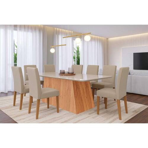 Sala de Jantar Completa Helena Tampo Madeirado c/ Vidro 210x100cm e 8 Cadeiras Maia Cinamomo/Off White - Nature/Suede Gengibre Bege - Cimol Abaixo segue os produtos do KIT: Sala de Jantar Completa Helena Tampo Madeirado c/ Vidro 210x100cm e 8 Cadeiras Maia Cinamomo/Off White - Nature/Suede Gengibre Bege - Cimol