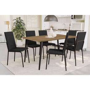 Sala de Jantar Completa Iguaçu c/ Tampo de Madeira 1,36cm e 6 Cadeiras Amsterdã Preto Fosco/Corano Preto 110 - Kappesberg Abaixo segue os produtos do KIT: Sala de Jantar Completa Iguaçu c/ Tampo de Madeira 1,36cm e 6 Cadeiras Amsterdã Preto Fosco/Corano Preto 110 - Kappesberg