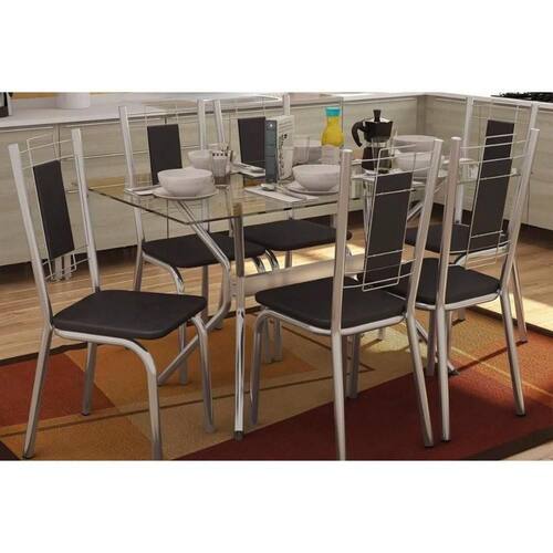 Sala de Jantar Completa Loire c/ Tampo de Vidro 80x140cm e 6 Cadeiras Florença Cromada - Preto - Kappesberg Abaixo segue os produtos do KIT: Sala de Jantar Completa Loire c/ Tampo de Vidro 80x140cm e 6 Cadeiras Florença Cromada - Preto - Kappesberg Tampo Mesa Sala de Jantar Vidro TAV1461 Vidro Retangular 140x80cm Incolor - Kappesberg