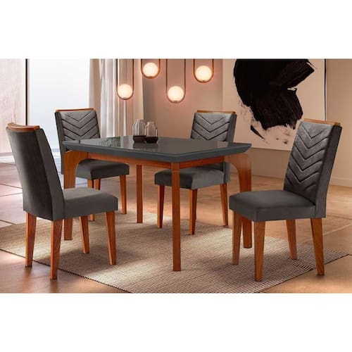 Sala de Jantar Completa Londrina Tampo Madeirado c/ Vidro 120x80cm e 4 Cadeiras Londrina Imbuia/Grafite - Rufato