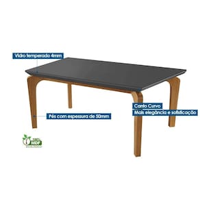Mesa de Sala Jantar Londrina c/Tampo Madeirado Vidro Canto Curvo 180x90cm Grafite/Imbuia/Vidro Grafite - Rufato