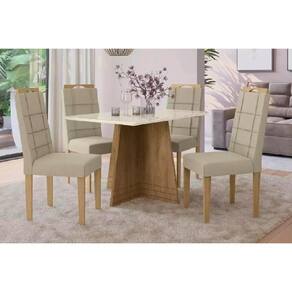 Sala De Jantar Completa Lótus Tampo Madeirado C/ Vidro 105x105cm E 4 Cadeiras 2cad150 Nogueira/off White/vidro Off White - Eucalipto - Kappesberg