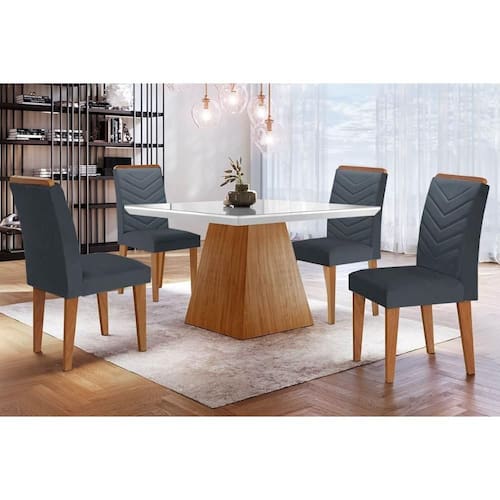 Sala de Jantar Completa Luna c/ Tampo Madeirado c/ Vidro Canto Curvo 90x90cm e 4 cadeiras Londrina Imbuia/Off White - Suede Grafite - Rufato Abaixo segue os produtos do KIT: Sala de Jantar Completa Luna c/ Tampo Madeirado c/ Vidro Canto Curvo 90x90cm e 4 cadeiras Londrina Imbuia/Off White - Suede Grafite - Rufato