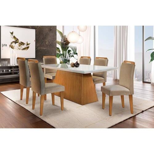 Conjunto: Mesa Sala Jantar Luna c/ Tampo Madeirado c/ Vidro Canto Reto 180cm + 6 Cadeiras Athenas Imbuia/Linho Turim - Rufato Abaixo segue os produtos do KIT: Conjunto: Mesa Sala Jantar Luna c/ Tampo Madeirado c/ Vidro Canto Reto 180cm + 6 Cadeiras Athenas Imbuia/Linho Turim - Rufato