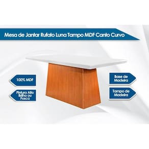Mesa de Sala Jantar Luna + Tampo Madeirado Vidro Reto 180x90cm Imbuia/Off White - Rufato