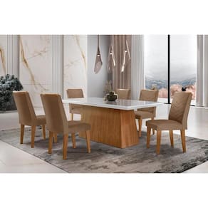Sala de Jantar Completa Luna c/ Tampo Vidro Canto Curvo 180x90cm e 6 cadeiras Londrina Imbuia/Off White - Suede Capuccino - Rufato Abaixo segue os produtos do KIT: Sala de Jantar Completa Luna c/ Tampo Vidro Canto Curvo 180x90cm e 6 cadeiras Londrina Imbuia/Off White - Suede Capuccino - Rufato